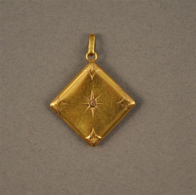 PENDENTIF formant carré ouvrant, en or à motif floral. Poids : 3,6 g.