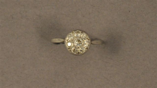 BAGUE en or blanc ornée de 8 diamants de taille ancienne et demi-taille, en motif circulaire. Poids brut : 2,6 g.