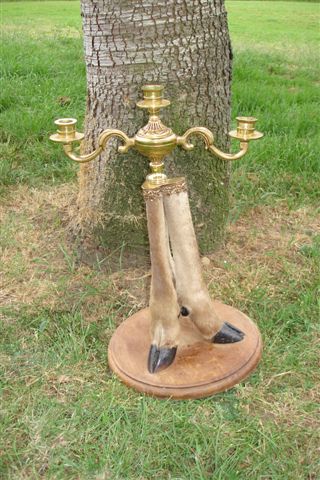 CHANDELIER constitué de 3 pieds de cervidés, monture bronze et bois.