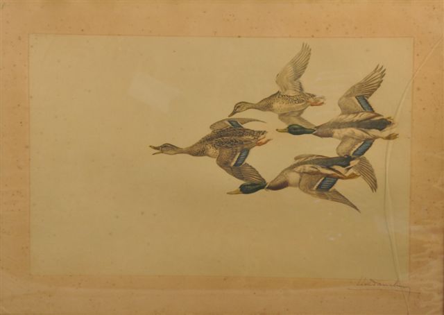 Gravure en couleur (La Gravure française 1957 (ou 1937)). Signée au crayon dans la marge. (Rss éparses). 71 x 44 cm.