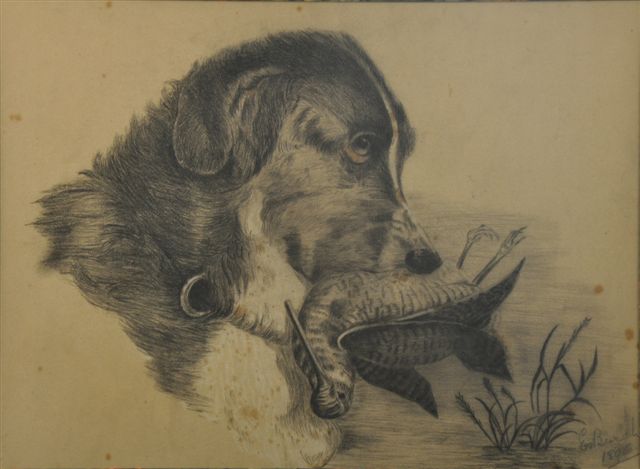 BURCH E. Chien tenant une bécasse.