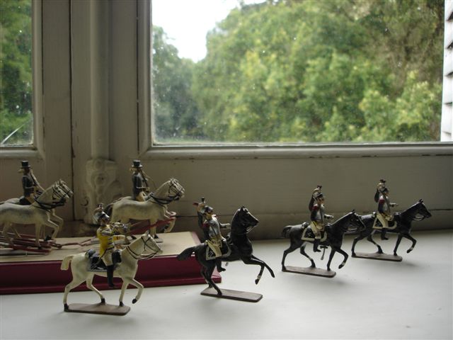 4 CAVALIERS, soldats en plomb. C.B.G.