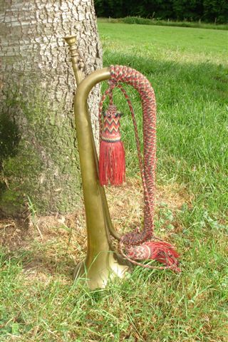 CLAIRON en laiton avec embouchure. Haut. 51, Larg. 12 cm.