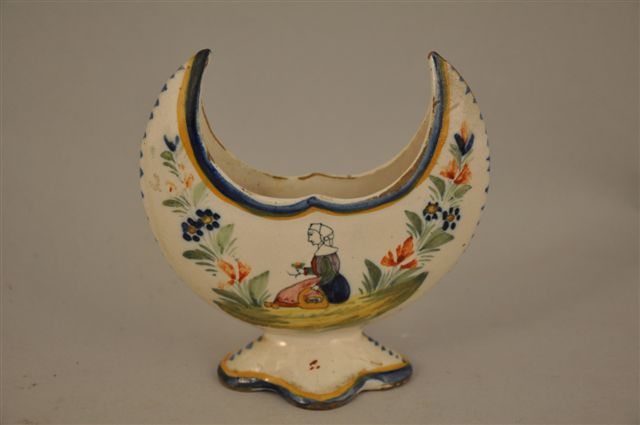 QUIMPER HB. VASE en forme de croissant de lune. Haut. 12,5 cm.