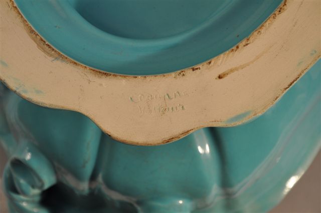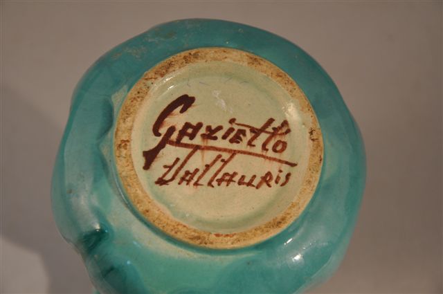 Joint : VASE en céramique turquoise, signé Gaziello Vallauris. Haut. 18 cm.