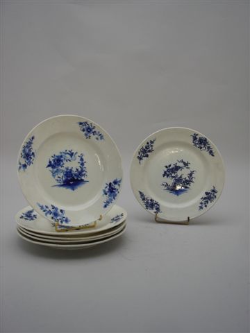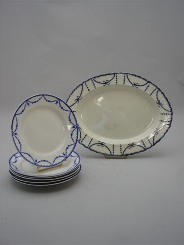 VARIA. PLAT ovale en faïence fine à décor en bleu, sur l'aile, de guirlandes, bordure au peigné en relief. Long. 42,5, Larg. 32,5 cm.