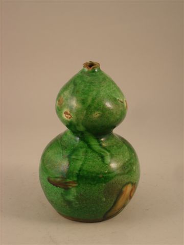 VARIA. GOURDE-CALEBASSE en céramique glaçurée verte. XVIIIème. Haut. 22 cm. (éclats)