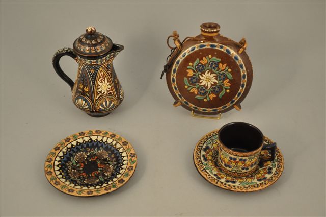 THOUNE. Diverses pièces : GOURDE, une CAFETIÈRE, une TASSE et 2 SOUS-TASSES (quelques égrenures)