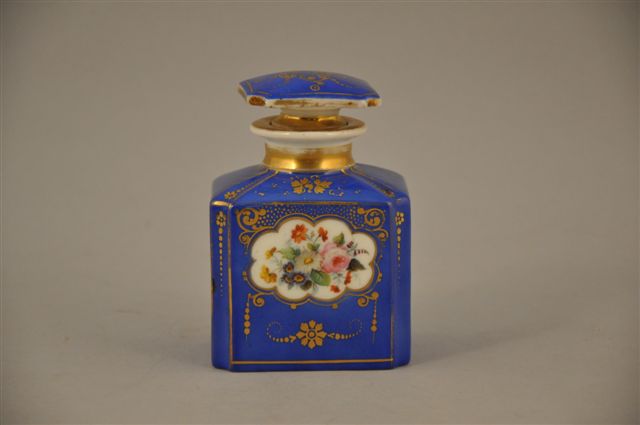 PARIS. FLACON en porcelaine à décor floral dans des réserves sur fond bleu de Sèvres.