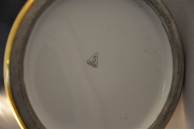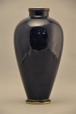 SEVRES. VASE balustre en porcelaine bleue nuagé et filet or. Marqué S, 1905, en vert de chrome.