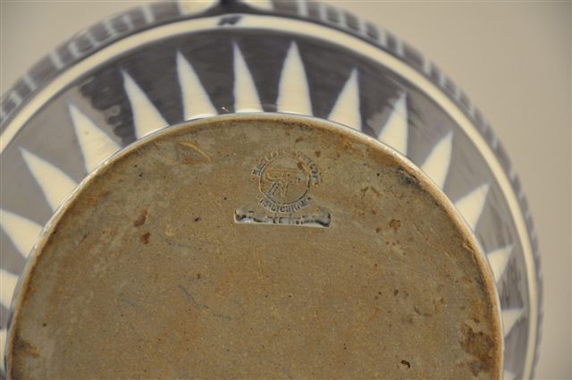MALICORNE. VASE-AMPHORE en grès émaillé à décor tournant de motifs géométriques stylisés dans des réserves. Col resserré. Anses hautes. Bordure et talon "Bleu de Sèvres". Cachet rond en creux : "grès [...] Malicorne". Dans le goût indo-persan. XXème. Haut. 42 cm.