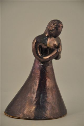 VARIA. Femme priant. SCULPTURE en céramique à couverte noire métallique.