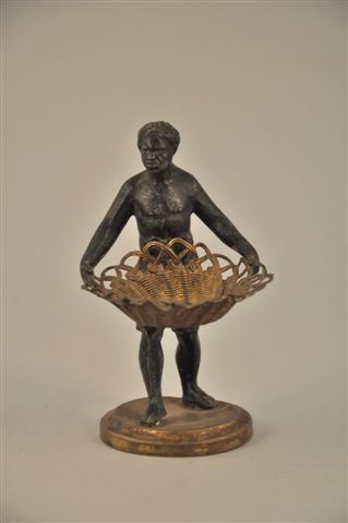 VIDE-POCHE en régule figurant un homme noir portant un large panier. Haut. 13 cm.