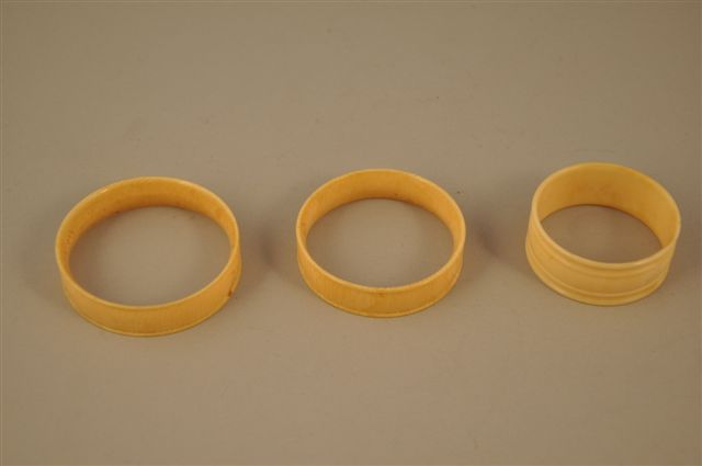Ensemble de trois RONDS DE SERVIETTE en ivoire, Diam. 6,5, 6 et 5 cm.