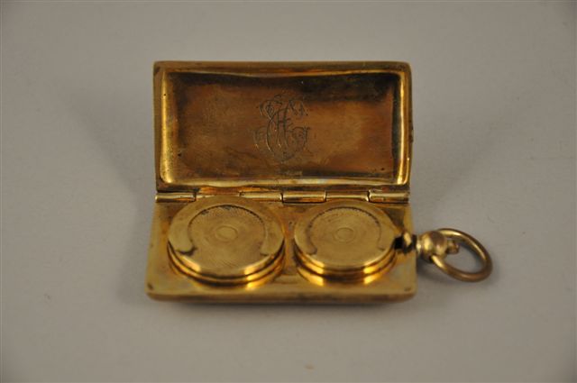 PORTE-LOUIS en métal doré guilloché, à deux receptacles, monogrammé à l'intérieur "DH". 3 x 7 cm.