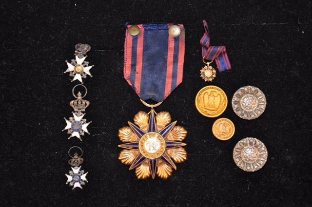 LOT comprenant TROIS MEDAILLES réduction de la Légion d'Honneur en argent émaillé blanc et bleu "Vive le Roi", " Louis XVIII et Henri IV" et "Dévouement Fidélité, 12. AV. 3. MAI 1814. 19 MA. 8 jui. 1815" (accidents)
