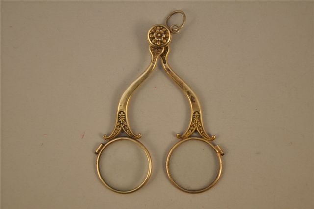 BINOCLE à monture en argent doré, les branches mouvementées à décor de palmettes et fines fleurs, axe en fleur épanouie. Anneau de suspension. XIXème. Poids brut : 124 g.