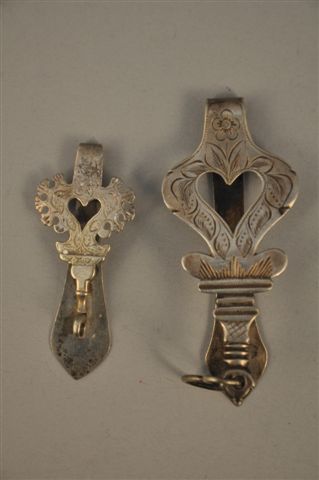 LOT de DEUX ÉLÉMENTS de CHAÎNE GILETIÈRE en argent à décor gravé floral, ajourés d'un coeur. XIXème. Poids : 44 g.