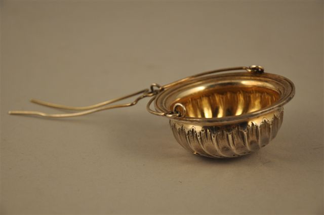 PASSE-THÉ en argent de forme circulaire, le panier à côtes torses finement repercé de volutes. Poinçon Minerve. Poids : 45 g.