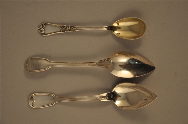 Suite de DEUX CUILLÈRES à CAFÉ en argent , modèle à filets, gravé d'un blason surmonté d'une couronne comtale. Poinçon Minerve. Poids : 52 g.