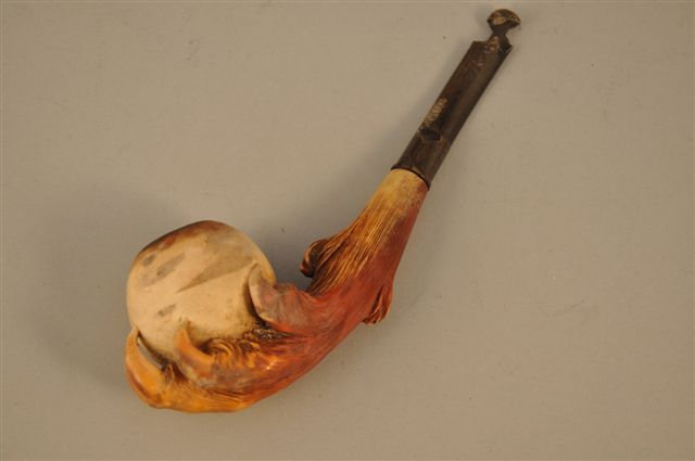 PIPE en écume de mer, griffe en serre d'aigle retenant le fourneau boule. Conduit en corne (accdt.)