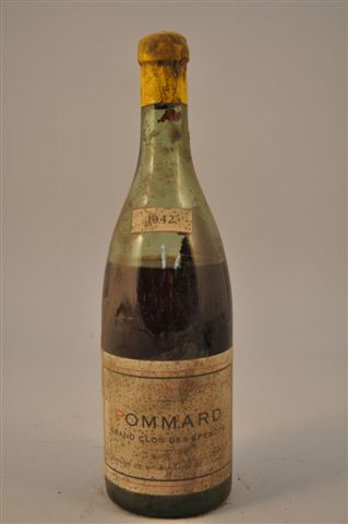 LOT de 14 bouteilles comprenant : BEAUNE, vieux : 2 bouteilles (1 niveau très bas, l'autre vidange). CLOS DE LA MOUTONNE, Gevrey Chambertin, Maison Thomas-Bassot, 1923 (millésime présumé pour une) : 3 bouteilles, (2 vidange et une niveau bas). POMMARD, Grand Clos des Epenots, Domaine de Bernard de Courcel, 1942 en colerette (millésime présumé pour 2) : 5 bouteilles (vidange). CORTON CHARLEMAGNE, 1934 en colerette (dont 2 présumé) : 4 bouteilles (1 niveau correct et 3 vidanges)