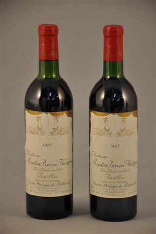 CHATEAU MOUTON BARON PHILIPPE. Pauillac, 1972. 2 bouteilles (haut de l'épaule et bas du goulot)