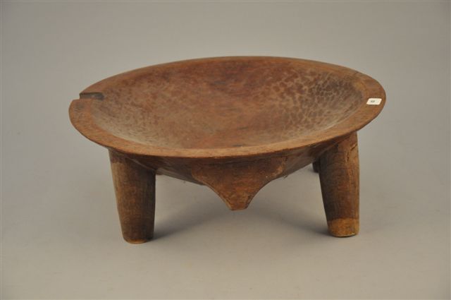 COUPE À NOURRITURE posant sur quatre pieds avec élément d'attache. Bois à patine d'usage. Éclat sur le bord.