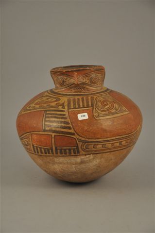 IMPORTANT VASE à tête d'oiseau à décor polychrome de motifs décoratifs pourrait représenter le corps de l'animal