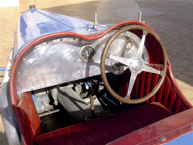 La carrosserie est spécial Type course à 2 places - couleur bleue - sellerie rouge.