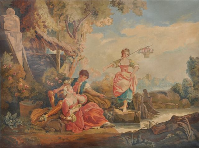 Reprise avec variantes de la tapisserie réalisée aux Gobelins d'après un carton de François Boucher (voir A. Ananoff, François Boucher, Genève, 1976, n° 1682, reproduit).