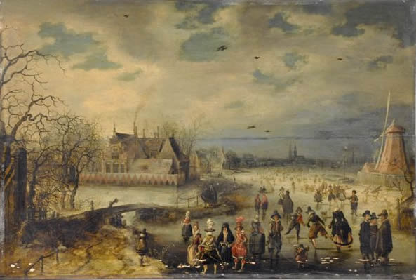 Il s'inscrit dans une tradition de peintures de paysages d'hiver réalistes initiés, en Flandres, par Pieter Brueghel le Vieux et suivi par son fils Jan Brueghel de Velours. Les peintres de Middelburg, tels que Adriaen van de Venne ou Christoffel van den Berghe, ont permis la diffusion de ce type de paysages. Ils ont ouvert une voie qu'exploiteront, comme un genre indépendant, des artistes hollandais tels que Hendrick Avercamp, Anthonie Verstraelen ou bien Adam van Breen, tous trois peintres à Amsterdam. L'influence des paysages flamands s'est également transmise par l'intermédiaire de la gravure et notamment l'ouvrage de Hieronymous Cock en 1559 : Nombreux et très jolies scènes de villages divers, fermes, champs, rues… des environs d'Anvers. Claes Jansz Visscher en a réutilisé 23 gravures dans son ouvrage publié en 1612 à Amsterdam.