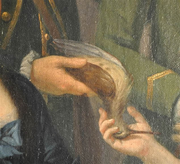 Une toile - anciennement - au revers du tableau permet d'identifier les personnages et mentionne l'inscription Peint par Jean Melchior / Wyrsch à Besançon 1773. Un numéro au-dessus de chaque tête renvoie à une légende située au-dessous du schéma qui indique les prénoms, nom, titre et âge de chacun.