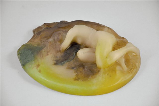 Alfred Finot débute sa formation à l'École des Beaux-Arts de Nancy, il entre par la suite dans l'atelier de Louis-Ernest Barrias, puis il devient dès 1901 membre du Comité Directeur de l'École de Nancy. De nombreuses oeuvres de Finot, comme notre sculpture seront éditées par Walter. Celui-ci reçut sa formation initiale à la Manufacture de Sèvres. Il intègre en 1905 la cristallerie Daum qui lui apporte la notoriété, notoriété reconnue au sein de l'Exposition Universelle de 1900.
