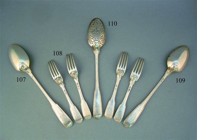 ENSEMBLE de QUATRE FOURCHETTES en argent, modèle à filet. Portent les armoiries des Gardès, surmontées d'une couronne comtale.