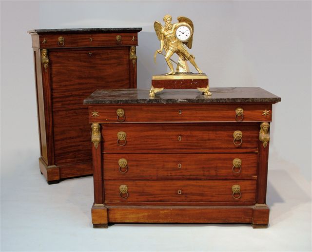 ENSEMBLE comprenant un SECRÉTAIRE et une COMMODE en acajou et placage d'acajou.
