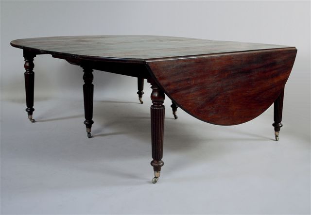 Long. totale avec les quatre allonges : 358 cm. Deux allonges en acajou : l'une de 48,5 et l'autre de 35,5 cm. Deux allonges en bois blanc de 48,5 cm.