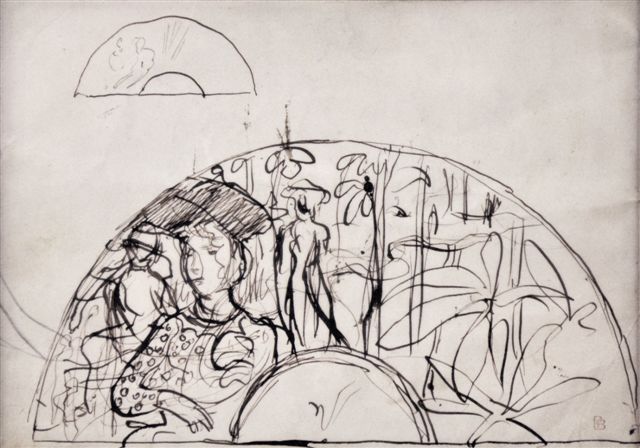Projet d'éventail : femme et fleurs - et, au verso, fillettes.