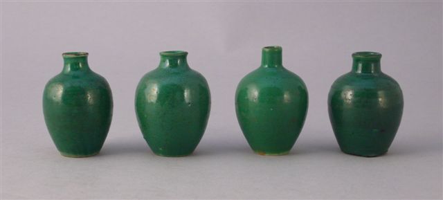 Ensemble de quatre petits modèles de VASES balustres en porcelaine émaillée vert.