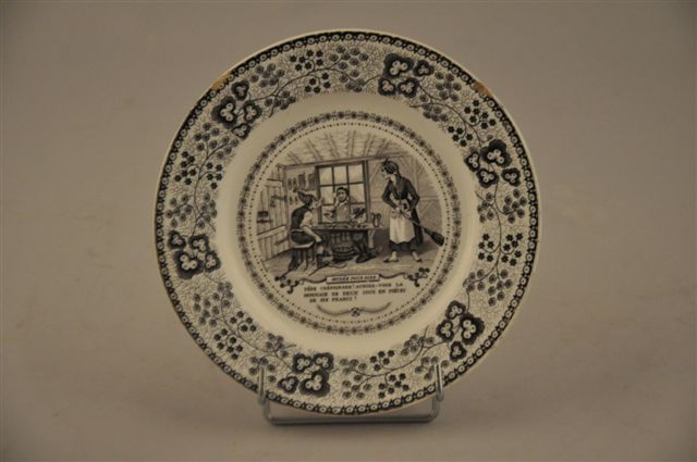 Ces assiettes constituent la suite complète du "Musée pour rire", elles sont légendées :