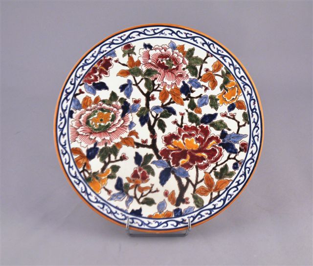 PLAT À TARTE ROND en faïence à décor peint de fleurs polychromes dans le goût de Delft.