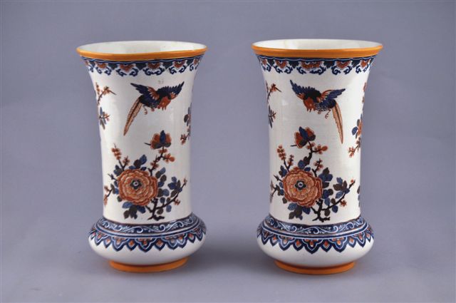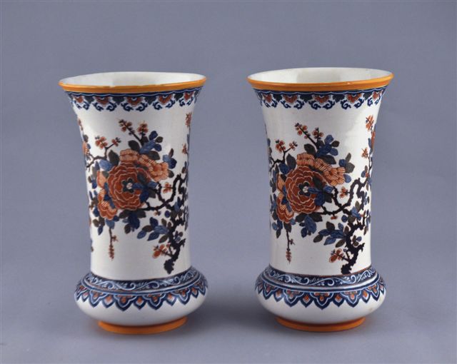 Paire de VASES CORNET en faïence, à décor polychrome de fleurs dans le goût de Delft.