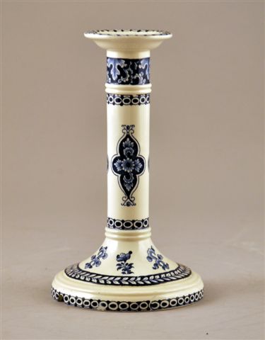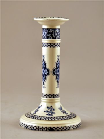 FLAMBEAU en faïence à socle rond et fût cylindrique en faïence fleurie en camaïeu bleu sur fond blanc, complété de frises (moulé pour un montage électrique).
