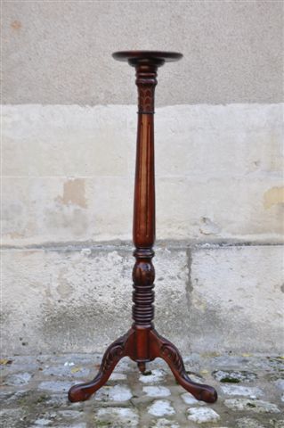 Grand PIED BALLUSTRE en acajou simulant une colonne à chapiteau corinthien reposant sur trois griffes de lion à rinceaux.