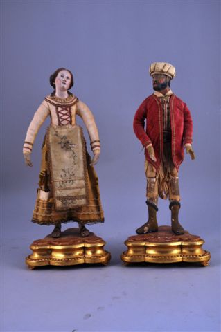 Travail napolitain ancien. Haut respectives (sans le socle) : 35 et 36 cm (accidents, restaurations anciennes, usures et petits manques).