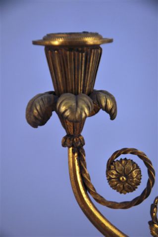 Paire de FLAMBEAUX Amour à 3 lumières en bronze doré et patiné, sur un socle cylindrique de marbre blanc. Louis XVI, fin XVIIIème-XIXème. Haut. 67 cm.