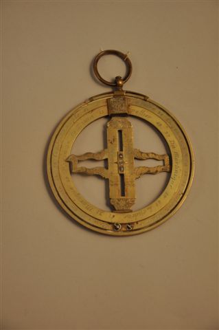 ANNEAU ASTRONOMIQUE en laiton finement gravé. Cercle équatorial indiquant les latitudes de nombreuses villes dont Constantinople, Cayenne, La Martinique. Signé "C. LANGLOIS à Paris". XVIIIème. Diam. 9,5 cm.