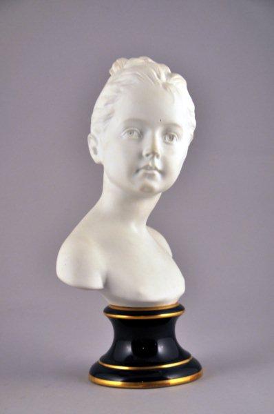 BUSTE DE FILLETTE en biscuit sur un socle émaillée bleu à filet or (fèle au torse).
