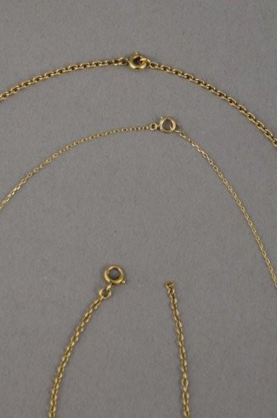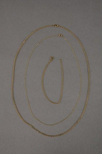 Joint : PARTIE de CHAINE en or, maille forçat (Poids : 1,7 g.), CHAINE en or 14 K, maille forçat lapidée. (Poids : 1,4 g.)
