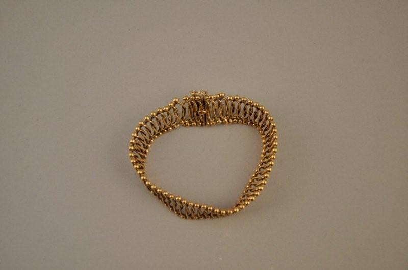 BRACELET en or jaune à maillons entrelacés et rang de perles en bordure. Poids : 22,8 g. AC